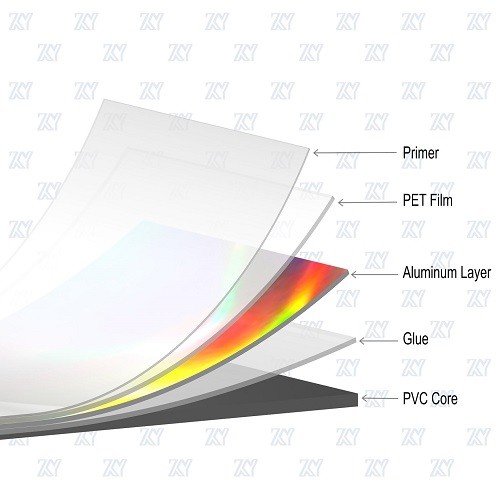 plastic (PVC) sheet composited together and get a holographic appearance and